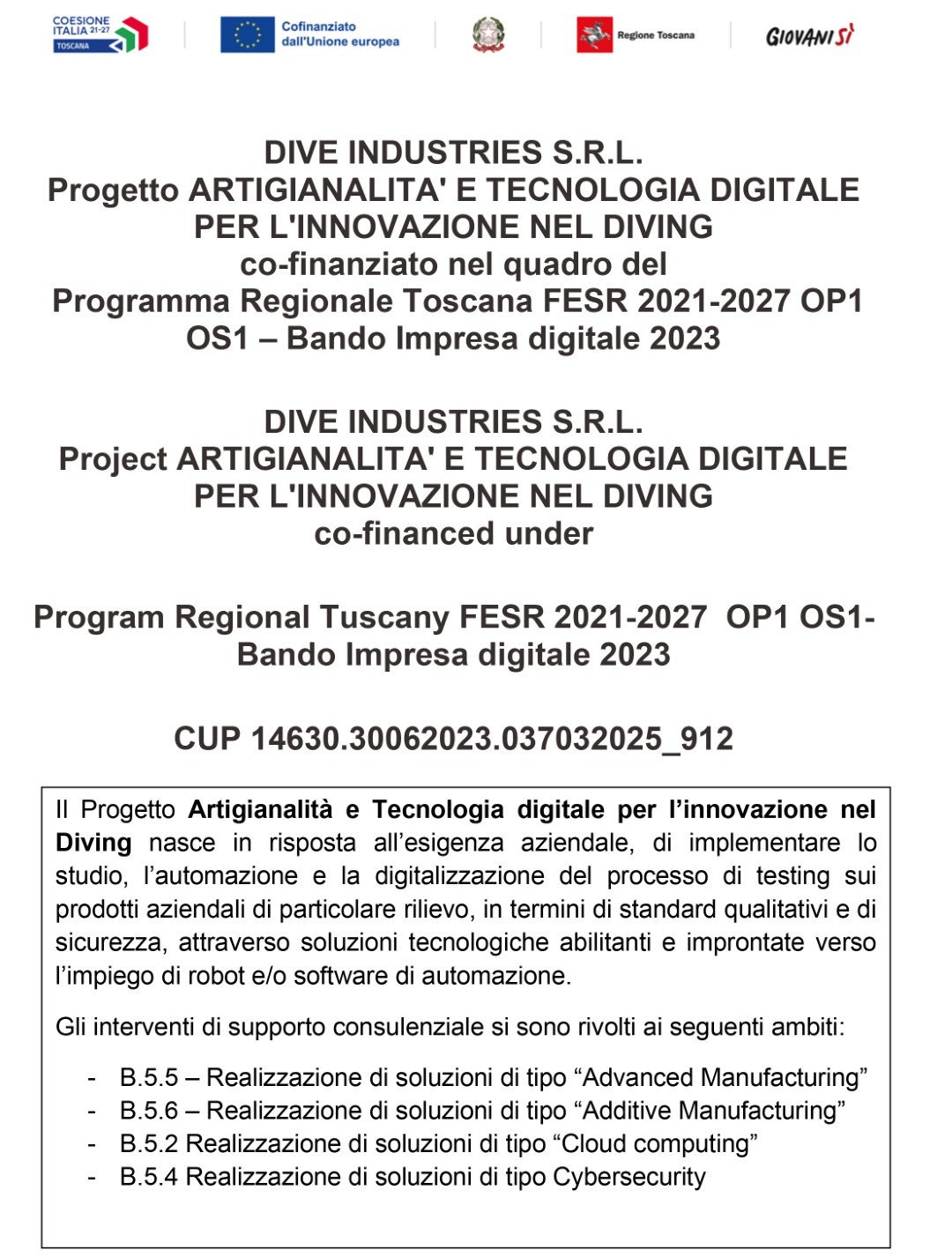 Dive Industries srl, P.IVA: 11859581008, Registered office: Via Amorotti 15, Follonica, 58022 (GR) Tuscany - Italy | Operational headquarters: Via Vetturini 22/24, 58024, Valpiana (Massa Marittima), GR, Tuscany - Italy | DiveSystem® is a registered Trademark.