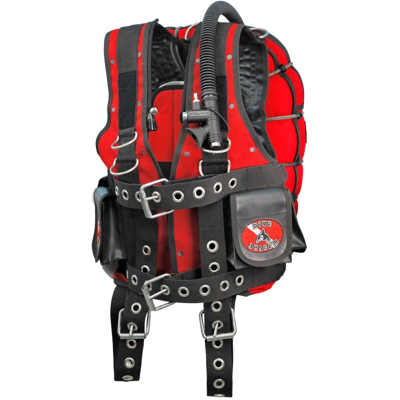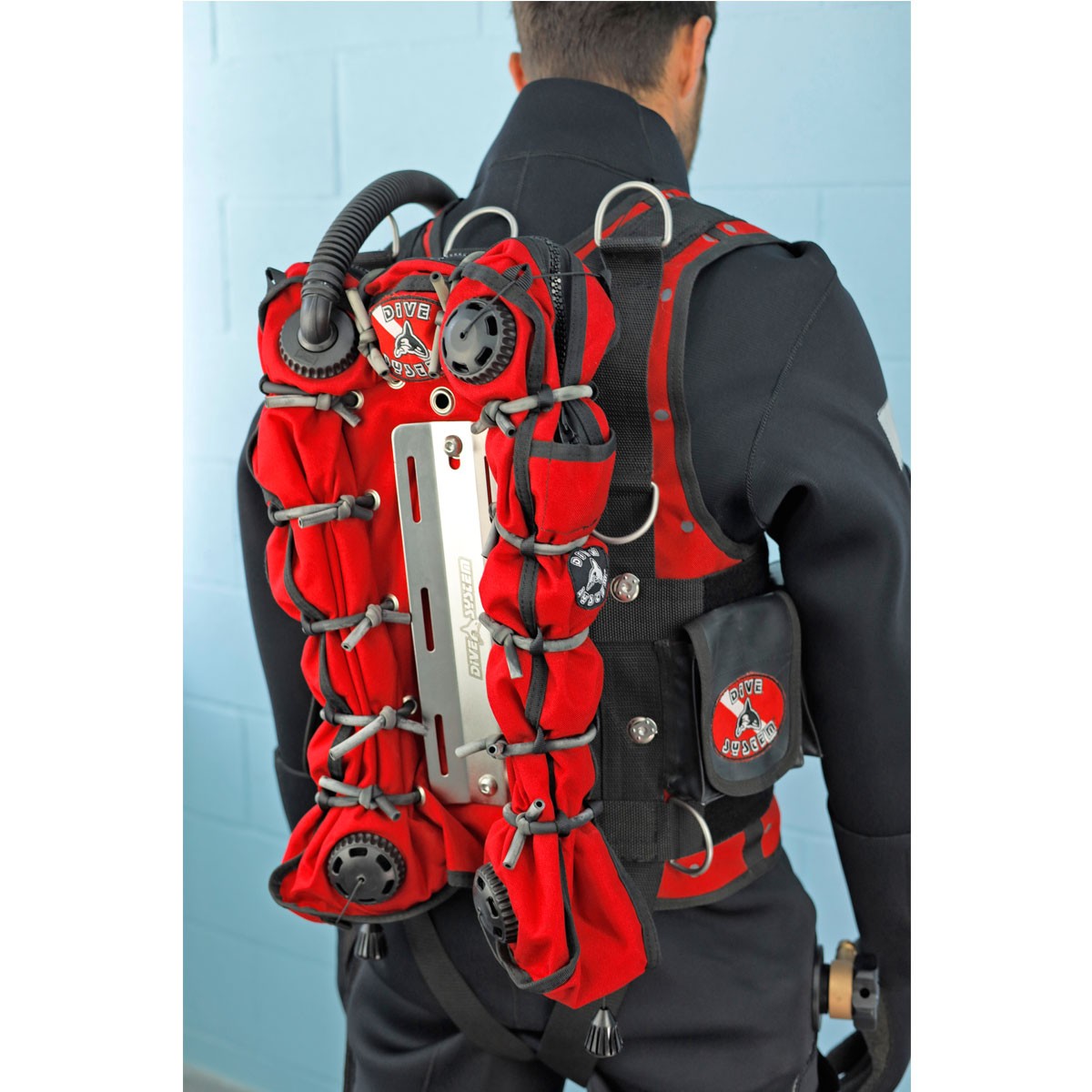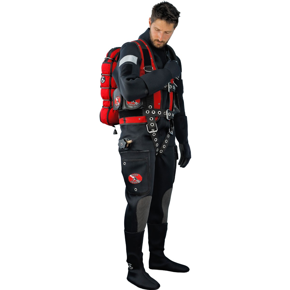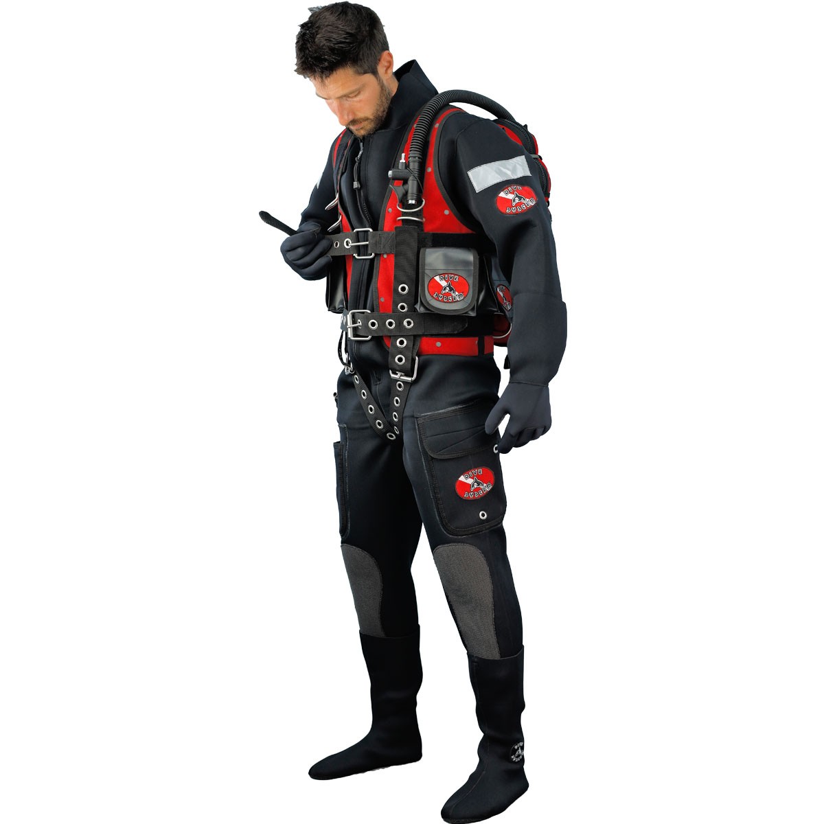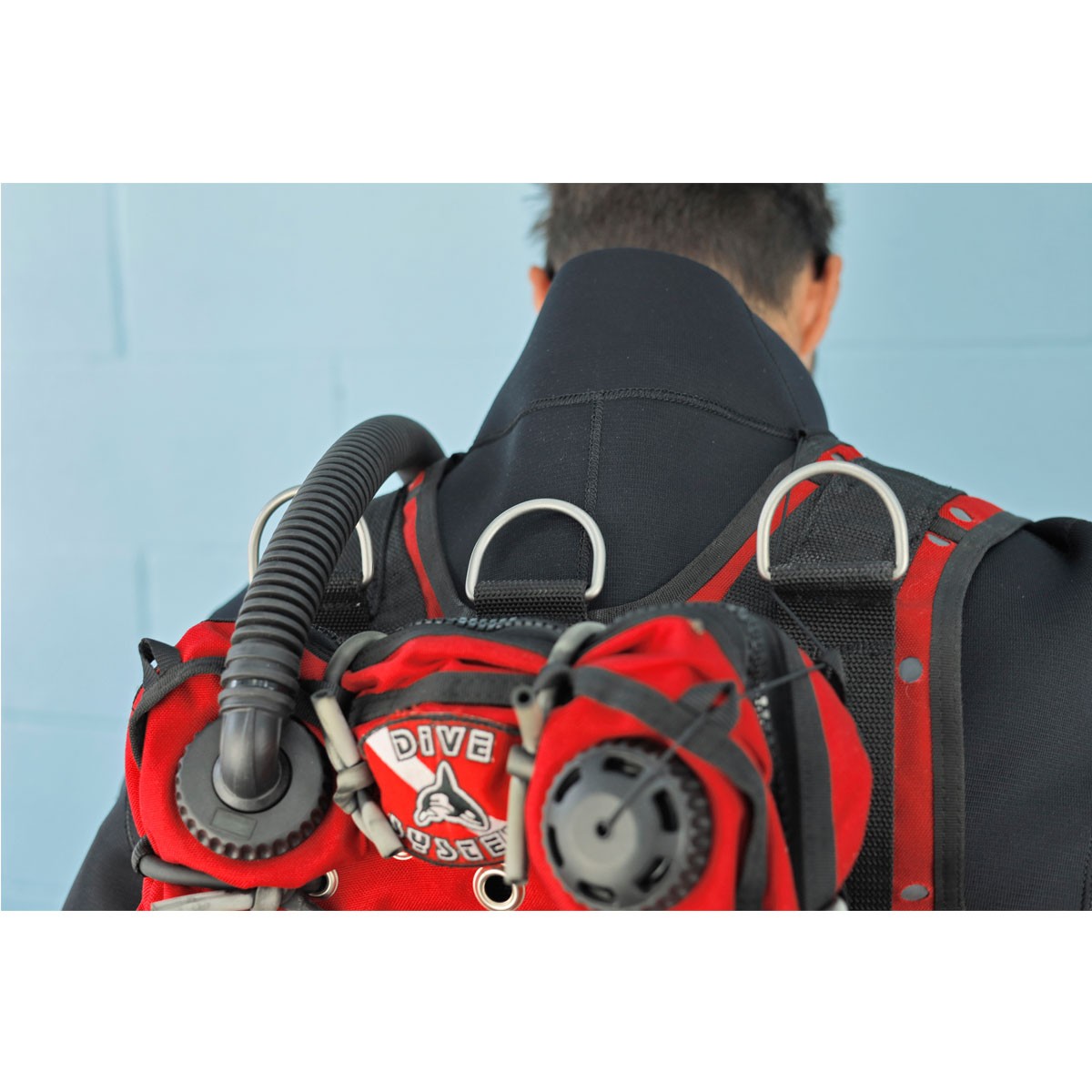 A special BCD created looking for the maximum resistance possible. The air cell on the back allows the diver to choose to work in negative, neutral or positive buoyancy condition.