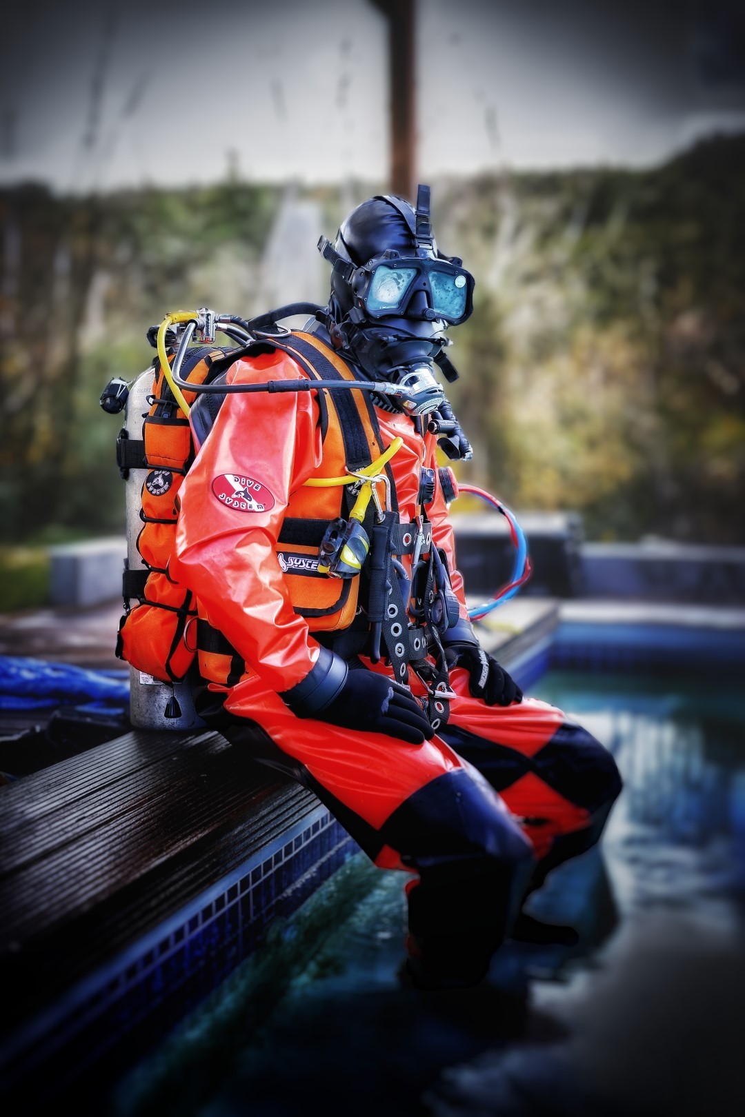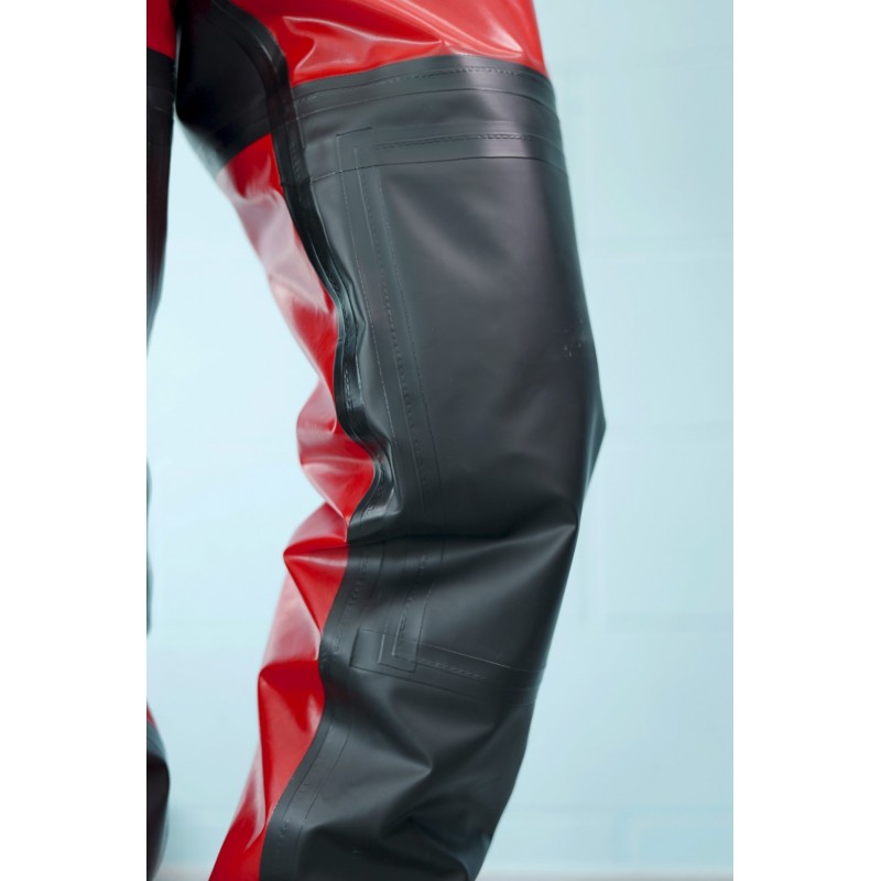 What a Dummy-Suit is? well, it is like a Dry Suit, but with no dry seals and with special made neck, wrists and, zipper to be super quick and easy to dress up. The Dummy-Suit dresses exactly like your future DiveSystem Dry Suit.