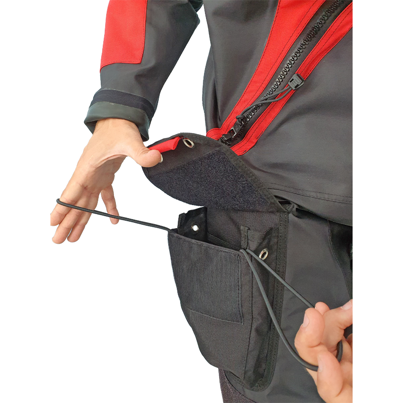 What a Dummy-Suit is? well, it is like a Dry Suit, but with no dry seals and with special made neck, wrists and, zipper to be super quick and easy to dress up. The Dummy-Suit dresses exactly like your future DiveSystem Dry Suit.