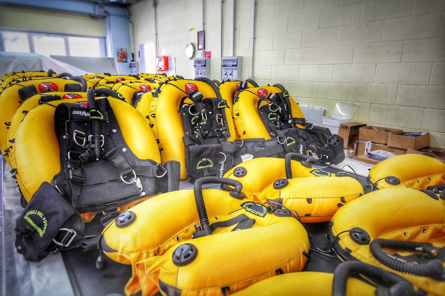 Special Made Tech Deep BCD with stainless steel plate and backplate for the SOMMOZZATORI - VIGILI del FUOCO (Italian Fire Brigades, diving team).