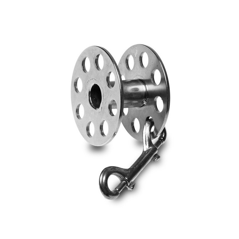 Dévidoir en acier inoxydableMousqueton à double extrémité en acier inoxydable / crochet de déclenchement inclusLigne de polyester ciré de 2 mm incluse (+/- 30 mt)