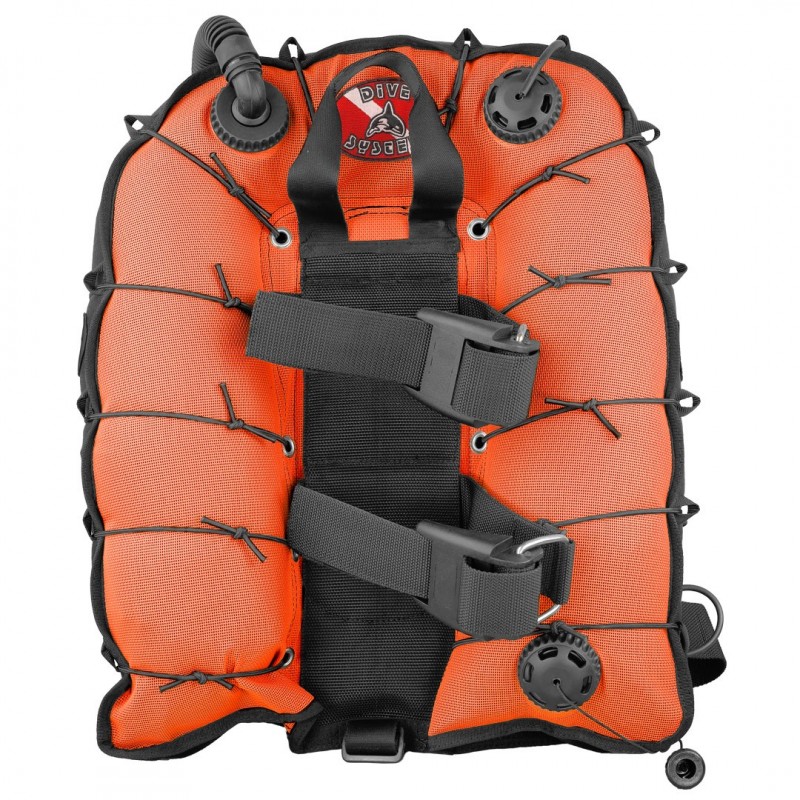 L'optimisation de l'hydrodynamisme a été obtenue grâce à 12 élastiques qui maintiennent le gilet bien attaché à la bouteille de plongée lorsqu'il est dégonflé et ils assurent une correcte sortie de l'air en toutes les positions dans l'eau.