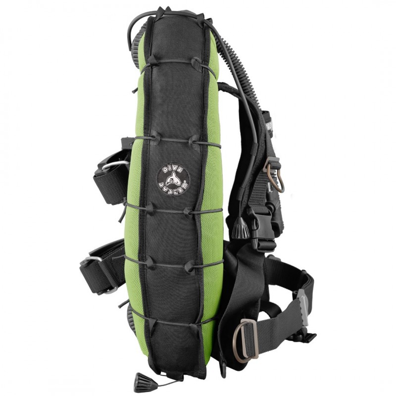 Le confort et la sécurité du plongeur ont été pris en compte avec l'insertion d'un harnais confortable en Cordura 1000 avec un baudrier en mousse double couche intégrée. Les boucles de réglage de 50 mm sont indestructibles et faciles à manipuler. De plus, les anneaux en D en aluminium, solides et légers, sont placés sur les bretelles et à la taille, offrant des options de réglage personnalisables. La fermeture à la taille avec une boucle en acier inoxydable, la sous-cutale amovible et les doubles sangles de 50 mm pour la bouteille de plongée assurent une stabilité parfaite.