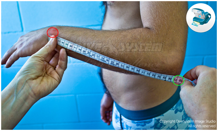 выступ кости (в самой узкой точке запястья) и другим концом до угла