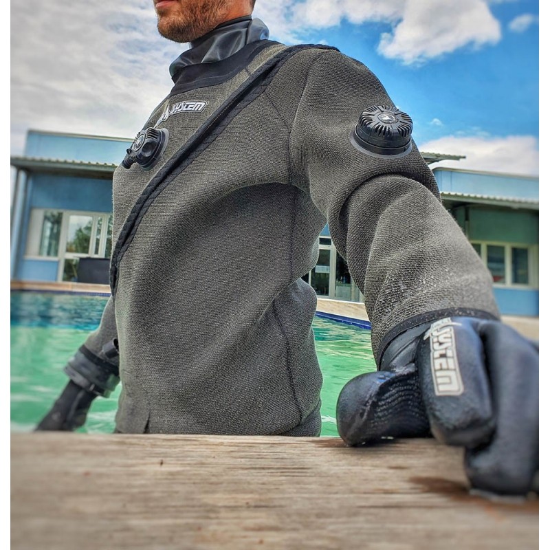 Две поверхности неопрена Гладкая/Шлифованная и покрытая Тканью/Плюшем сторона. Идеален для погружений, как в ледяной, так и в теплой воде.