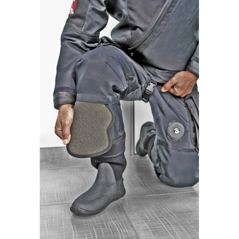 Интегрированы в сухой костюм, можно нырять как с защитными вставками, так и без них.